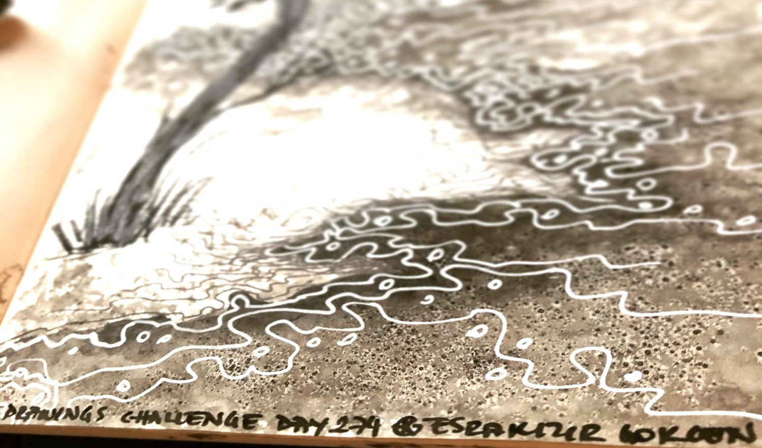 Esra chose drawing as her preferred technique because it is essential for all visual art forms. She used pencil, ink, charcoal, fine liner, and acrylic pen on paper to create this collection. To emphasise the randomness of life, she used the free flow of ink with water and added a rich variety of textures on the surface. "