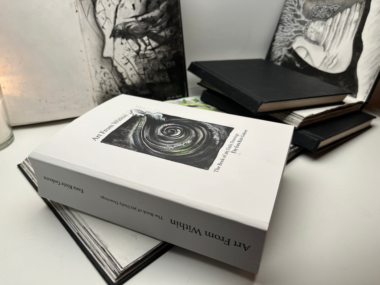“ Esra is a migrant artist from Istanbul. Her approach to life and art has been reflected every day, for an entire year through her drawings for the 365 Drawings Project. Since moving to the UK, the effects of living in a new and widely diverse community led her to have the courage to share her authentic artistic way of self-discovery. The “Art From Within” collection is a selection from her visual diaries during the Covid19 Lockdown.